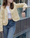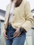 Top: Light yellow Chanel-style jacket, gentle and sweet.