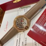 Actual photos of the limited edition custom-made turtledove gray lychee-grain leather. Gray has always been a favorite in fashion, a warm, light hue, and a symbol of good taste! The lychee-grain leather has just the right amount of saturation, and the delicate lambskin is incredibly soft and comfortable to wear. The key is a premium look. The Cartier Blue Balloon with a gold leopard diamond face is luxurious and elegant. The real thing is stunning. Swiss quartz, size 36mm. Look for this exclusive color and highly recommend it!