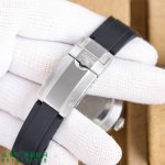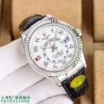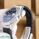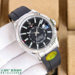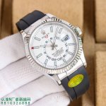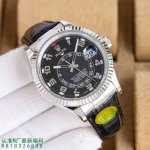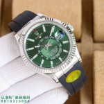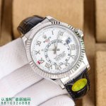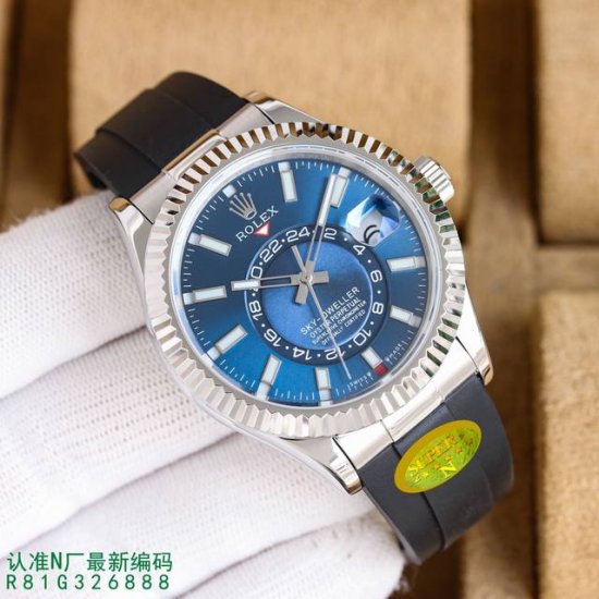 Available in both gold and white, with rubber and steel bands, the new Rolex Sky-Dweller collection, "the most complicated Rolex ever," has officially launched! This watch redefines the true Skywalker replica with exquisite craftsmanship and precise adjustment. The 42mm Oyster case is crafted from 904L stainless steel, a classic reimagining. It features a highly transparent sapphire crystal with a cyclops lens to magnify the date. The bezel features the Rolex Ring Command fluted bidirectional rotating bezel, with the month function adjustable by rotating the outer ring. The clasp is a folding Oyster buckle with a 5mm easy-adjust link extension system. The dial, featuring an exclusive, authentic "Charm Blue" sunray pattern, dynamically transforms in sunlight and on cloudy days, embodying the same authentic charm. The 9001 movement, exclusively modified by N, oscillates at 2 vibrations per hour and boasts a 72-hour power reserve. The correct adjustment method, consistent with the original, is to adjust the second time zone. The Sky-Dweller displays this via a subdial. It consists of two elements: a red triangle below the logo indicates the time in the second time zone, displayed in 24-hour format. Pulling the crown out to the first position, upwards adjusts the calendar, while downwards adjusts the hour and minute hands, keeping them stationary. Pulling it to the second position adjusts the time normally, and the 24-hour subdial's bezel follows the movement. Ultra-high quality, only available from N.
