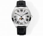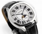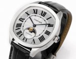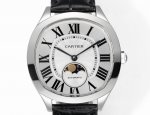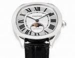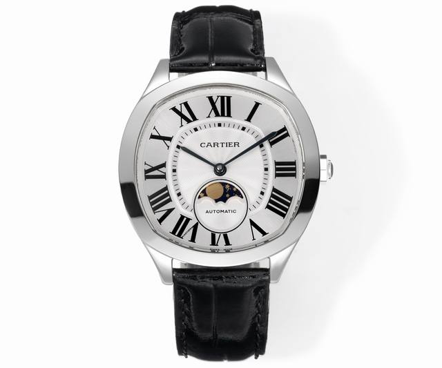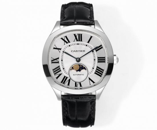 Cartier Drive De Cartier watch. Its elegant and solemn pillow-shaped design paired with sleek lines perfectly captures the masculine and unyielding charm of a man. The case measures 40mm x 41mm x 12.5mm. The unique pillow-shaped case is exceptionally well-made, and the sapphire crystal's clear, full, curved lines are perfectly replicated. Continuously striving for perfection, we strive to provide watch lovers with a true-to-original experience. A technological breakthrough, the original Cal. 1904-ps Mc movement features rhodium plating on the rotor and bridges. The balance wheel is positioned to match the authentic piece, with a fidelity that rivals that of a store-bought watch. Exceptional details: 1. Exclusively sourced from the market, the original mold is used. 2. The quenched and blued hands are full and three-dimensional. 3. The dial features a delicate and harmonious classic button-lock pattern. 4. The 12 Roman logos are printed in a superimposed pattern, creating a smooth, neat effect. Steady and restrained, this watch features exquisite craftsmanship, adding a touch of elegance to your wrist.
