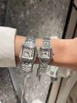Cartier launched the French Tank series in 1996, featuring a seamless case and bracelet design, making it the ultimate evolution of Cartier watchmaking. The serrated metal strap's articulation evokes the feel of tank tracks, lending this tank-inspired watch its truest name. The watch is exquisite and compact, making it a perfect fit for the professional woman. French Tank dimensions:
