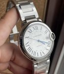 Cartier's most iconic watch, the Blue Balloon, has a highly recognizable round dial. The 42mm case diameter is perfect for men with larger wrists. The sapphire-enclosed crown is exclusive to the Blue Balloon.