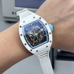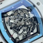 Factory photos. RM055 latest upgrade V5 upgraded integrated movement version. Original integrated double barrel integrated movement, more stable quality. Movement gems are not rhinestones nor glued on, can withstand the test pen. The "heart" is hand-set with imported white gemstones.