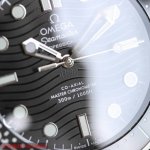 cases. The case is crafted from 316L stainless steel and features the only original ceramic unidirectional rotating chronograph bezel in its class. The side pressure relief valve is identical to the original. The watch diameter is 42.11mm, the official perfect size, with the latest 007 logo on the side. Please look for the bottom cover ear code: 89238899