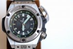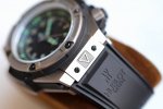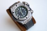 King Power Diver 731.Nx.1190.Rx. The titanium case is designed for diving to 4,000 meters. The screw-down crown and the crown that controls the rotating inner bezel are both highly protected. The hands and indexes are thickly coated with luminescent material for clear visibility in the pitch-black darkness of the deep sea. Equipped with the Hublot 1400 fully automatic mechanical movement, the heart of the 4,000-meter armor, it boasts a 42-hour power reserve!