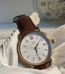 Iwc Portofino automatic mechanical movement, 18K red gold case, men's Swiss watch, 40mm silver dial, 18K rose gold case, alligator leather strap,