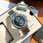 Maurice Lacroix Aikon Collection, an exclusive new three-eye chronograph watch with a white, blue, and black dial and steel strap for men. Since its first model was released in 1975, Maurice Lacroix has been a highly sought-after watch brand. Maurice Lacroix joined the ranks of Swiss luxury watchmakers in late 2006. The minimalist dial design is well-organized, eschewing any elaborate ornamentation that could hinder legibility. This genuine product is sourced from a trusted source and can be inspected at any time. Equipped with a Swiss ETA quartz movement, the 44mm diameter and 10.8mm thickness showcase its calm and elegant style. The sapphire crystal ensures clear and easy-to-read dial information. Exquisitely crafted in stainless steel, the three-eye, six-pin dial features a folding clasp for a comfortable and secure fit. This high-end watch with an internal fish-scale pattern is 100% authentic. This is not a small-scale production, so be sure to check the details. Limited quantities are available and come with full packaging and a carrying bag, making it a stylish gift for yourself or others!