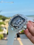 Richard RM052 Tourbillon watch based on the million-dollar Richard Mille watch, featuring a sapphire crystal and a fully transparent case, paired with a custom Swiss-made tourbillon movement. The case features a highly authentic lock-and-bear mechanism, and the imported rubber strap is designed based on an authentic Richard Mille watch. Ms Factory is committed to innovation, constantly refining the details of the original to enhance the watch's quality! This allows customers to truly experience the intimacy of a billionaire! If you're young and ambitious and want to succeed, don't wear a Richard Mille!