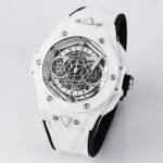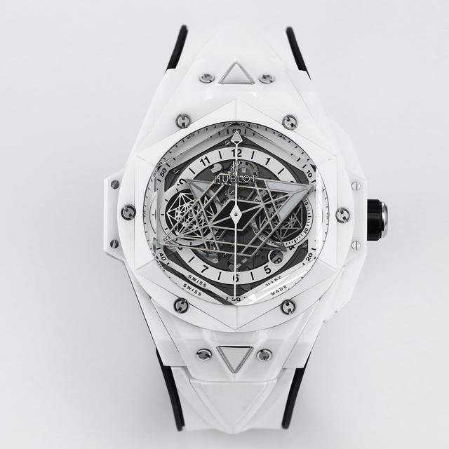 ceramic case utilizes a unique high-temperature and high-pressure forging method to create ultra-high-density colored ceramic. Only the finest of ceramics are carefully selected to ensure that each finished product is identical to the original, ensuring true authenticity. Polishing, satin-finishing, slicing, engraving, chamfering, and faceting create a visual illusion of alternating hexagonal shapes, perfectly embodying the brand's ambition and design philosophy. The dial's eye-catching diamond-shaped hour and minute hands and the two hexagonal sub-dials on the left and right develop a unique geometric pattern over time. The overall geometric pattern on the dial is polished to a CNC-grade finish, resulting in a sharp, flawless look from any angle. Every detail is meticulously crafted. The imported fluororubber strap and Hublot's easy-to-use folding clasp provide added comfort. The movement utilizes a 7750 modified Hub1240, ensuring flawless performance even when the case is transparent. Precision polishing significantly enhances the stability of the 7750 base movement, alleviating the long-standing issue of chronograph movements being merely cosmetic. Perfectly crafted, the Ol took two years to meticulously craft. Welcome to our watch lovers! Blue and gray ceramic models are being updated with new models. Recommended: Men's Multi-Function Mechanical Watch