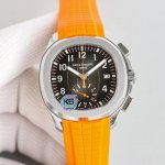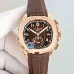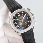 Platinum Mma - Patek Philippe Aquanaut Series, Grenade Series Watch Model: 5968A-001 pp 50mm stainless steel case with chronograph hands, a peripheral track-type scale accurate to a quarter of a second, and a 60-minute cumulative timer. The stainless steel case and rubber strap complement the stylish, sunny, and sporty feel. The case features a classic, rounded octagonal bezel. The bezel is chamfered and polished for a more refined look. The lugs, polished on the front and frosted on the sides, are slightly curved, creating a natural curve that makes the watch fit more snugly on the wearer's wrist.
