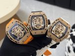 Richard Mille's latest upgraded all-in-one watch, the RM052, features a classic, legendary, and timeless skeleton skull watch. The distinctive skull silhouette and uninhibited design create a striking allure. Paired with a vibrant, lightweight rubber strap, it's even more stylish and avant-garde. In the vibrant summer heat, donning a short-sleeved T-shirt and sporting this vibrant watch is truly eye-catching! Size: 43x50mm, for a truly stunning display!