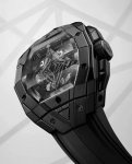 Hub4700 automatic skeleton chronograph movement. These disc hands also feature geometric shapes, a signature design element of the Hublot and Sang Bleu tattoo atelier collaboration.