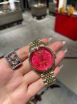 The latest Vivienne watch is here! Two strikingly contrasting colors. The rose-red dial paired with a metal strap is vibrant and sexy. The unique print on the dial elevates the watch's sophistication. The large 39mm dial makes wrists appear even slimmer!