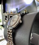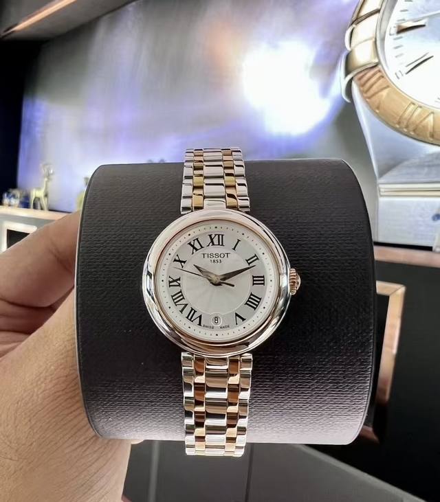 I now have my own little beauty! [smirking R] The original picture is already stunning! [thumbs-up R] It looks even better with my white moonstone! [sexy R] [sexy R] The picture was taken indoors with an Apple camera without beauty filters! [shy R] I put a small piece of transparent tape next to the dial to prevent the bracelet from scratching my little beauty! #TissotLittleBeauty #whitemoonstone #accessoriessharing #showwhatyou'rewearing #women'swatch #femalewatch