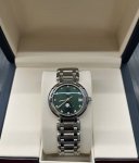 The Longines Heart Moon series shoes in Far Mountain Green are really amazing. They look very high-end in person. The 30.5mm watch glass is very fashionable. The sun pattern on the bottom plate is paired with bright diamonds, which is clear and bright. Green also symbolizes luck. This shoe has a good price-performance ratio and can be given as a gift or worn by yourself.