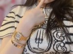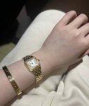 This little golden cheetah is so pretty! [Wow!] It looks so small, I thought it was light, but it's actually quite heavy. The bracelet is so snug against the skin, and the golden shimmer under the light is truly stunning. I ended up choosing the small size; the medium was too big and clunky, and the small was a bit small, but there were no other sizes available. [Freaking out!]