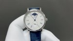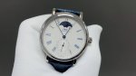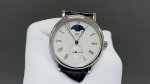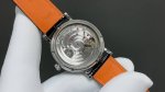features a brand-new replica of the IW544805 see-through watch. The case is made of 316L stainless steel, polished to a perfectly rounded finish. The small seconds dial is located at 6 o'clock, featuring a stop-seconds function and Roman numerals. The moon phase position at 12 o'clock is identical to the original. Note the leaf-shaped hands indicating the hours and minutes, the strap featuring a double-sided anti-reflective arched sapphire crystal, and the movement is crafted from Italian calfskin leather. The movement is an in-house developed, self-winding mechanical movement, ensuring stability and accuracy. Two and a half hands