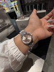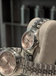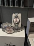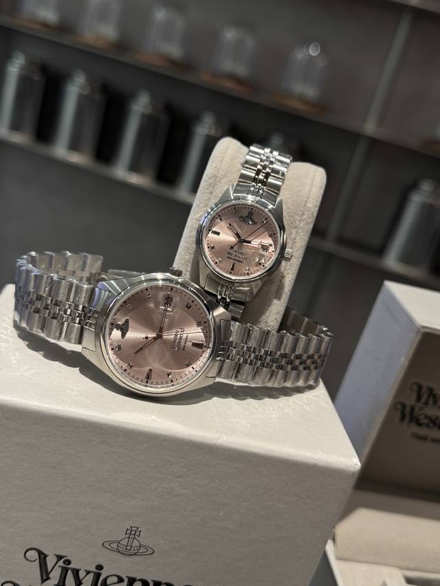 Vivienne Westwood Weiwei Anxi Taipo women's quartz watch, Vv311. The pink sunburst dial is paired with simple three-hand rivet hour markers, a Saturn logo at 12 o'clock, and a visible date window at 3 o'clock for easy reading. Choose from a variety of decorative details to create a unique style. Small 29mm Large 37mm