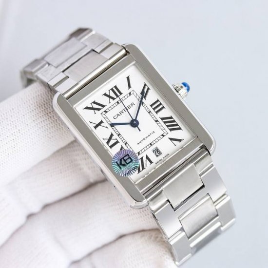 Tw Factory Cartier Tank series mechanical men's watch with steel case and strap: Wsta0029, steel band: W5200028, rose gold band: W5200026. Disassembled from the original mold, the original dimensions are: 40.5mm long, 31mm wide, and 7.8mm thick. Three reasons to buy: 1. Best value for money. Among products in its class, the price is the most reasonable, the workmanship is excellent, and the details are exquisite. 2. Authentic appearance: The case curves are the same, the CNC polishing level is the same, and the thickness and dimensions are the same. The bottom is sealed without opening the movement, ensuring professional watch appraisers are protected. 3. Stable movement: Equipped with an imported, genuine Citizen.9015 automatic mechanical movement, it maintains precise timekeeping with a QC error of within 10 seconds and is stable and long-lasting. Superb Details: 1. The beige sandblasted dial is identical to the original, not the pale white dial found on smaller manufacturers. 2. The hands are burnt steel blue, with polished, rounded tips for a truly premium look. 3. The markings are evenly oiled, free of burrs, and their thickness, size, and placement are identical to the original. 4. The crown is crafted from the same crystal-clear blue spinel as the original, not the plastic or inferior zircon used by smaller manufacturers. 5. Invisible areas like the caseback and lugs are also meticulously polished to create a truly authentic look. 6. From the case to the buckle screws, everything is compatible with the original. High-Quality Control: 1. Each watch undergoes an eyepiece quality control (QC) to ensure there are no noticeable flaws on the dial or movement. 2. The timekeeping is measured using an imported calibrator, followed by a day of hands-on simulation using a 3D simulator. Only when the error is within acceptable limits can the watch be packaged and shipped. The Cartier Tank, which is worn by celebrities, has a business-like and elegant temperament, showing a gentleman's style. If the Blue Balloon is versatile, then the Tank has a more dialect-oriented temperament. Andy Lau, Deng Chao, Jin Dong, and Lu Yi have all worn or endorsed the same watch. The watch is available in two options: leather strap and steel strap. The leather strap is darker