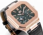Highlights: Functional display of date, day of the week, and moon phase are all real functions. Movement: Equipped with a modified 240ps eccentric mini-hammer, the movement is stable. Strap: Customized denim-grain calfskin on the surface and back, the buckle is the original folding buckle style. A 0.02 carat square diamond is set at the six o'clock position of the case as a low-key highlight. Sapphire mirror glass, case: size 45mm, thickness 11mm, the case diagonal length is from 10 o'clock to 4 o'clock. Because the case is approximately square, the width of the upper and lower sides will be less than this value, so the visual effect is not very large. Welcome to appreciate it.