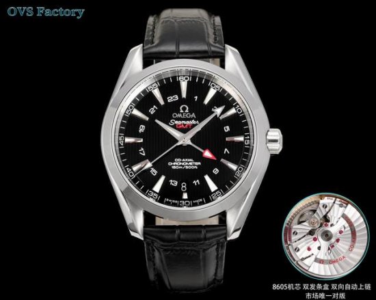 Ovs Seamaster 150M GMT equipped with a new 1:1 integrated movement. Size 43mm, new release! 1: Dial: Uniquely designed with stripes, crafted from yacht "teak" wood, GMT dual time zone. 2: Movement: 8605 caliber with dual mainspring barrels, bidirectional automatic winding, the only matching model on the market. 3: Shock absorbers with identical appearance and genuine functionality. Ovs, we mean business!
