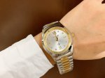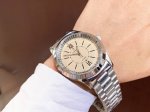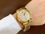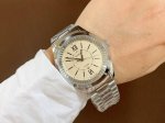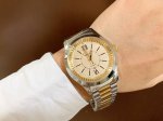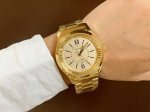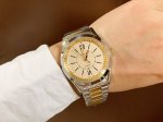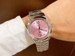 This latest Gucci timepiece in white rose gold features a stunning pearl-painted