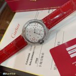 White Diamond, Gold Diamond, Ballon Bleu De Series Qixi Festival Special Edition, synchronized with boutiques. The dazzling dial features a combination of diamonds, pink sapphires, and sparkling embossing, offering a unique and exquisite interpretation of the brand's classic design. Swiss quartz movement, 36mm size. Beautiful red crocodile-patterned leather, bamboo calfskin. A stunning