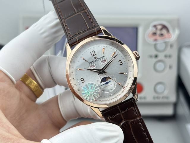 White-Gold DDD 5C Factory presents a masterpiece of exquisite aesthetics: the Jaeger-LeCoultre Master Collection 1558420, the highest-quality version on the market with a true small seconds hand at 6 o'clock. Exquisite details: Watch size 39mm x 12mm, thin yet sophisticated. DDD 1. The dome-shaped dial has a slight curve when viewed from the side. Multiple modifications ensure its charm rivals the original , restoring the watchmaking essence and showcasing its timeless allure in a slightly different way! DDD 2. Two windows at the 12 o'clock position display the day of the week and the month respectively. The sub-dial at 6 o'clock features a small seconds hand and a moon phase display, while the edge displays the date hand, restoring all functions. The DDD 3 clasp features a seamless design in the center, and the curved line appears unbroken when viewed from the side. The clasp's curvature matches the original, ensuring a more comfortable fit. It utilizes a 5C factory-customized modified Jaeger-LeCoultre 8661 movement, offering stable timekeeping and superior quality. Repeated modifications were made to ensure its exquisite craftsmanship, perfectly presenting a design that is both simple and complex. A masterpiece of 5C craftsmanship!