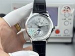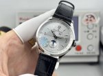 White-Gold DDD 5C Factory, with heartfelt dedication, presents the stunning Jaeger-LeCoultre Master Collection 1558420, the highest-quality version on the market with a true small seconds hand at 6 o'clock. Exquisite details: Watch size 39mm x 12mm, thin yet sophisticated. DDD 1. The dome-shaped dial has a slight curve when viewed from the side. Multiple modifications ensure its charm rivals the original, restoring the watchmaking essence and showcasing its timeless allure in a slightly different way! DDD 2. Two windows at the 12 o'clock position display the day of the week and the month respectively. The sub-dial at 6 o'clock features a small seconds hand and a moon phase display, while the edge displays the date hand, restoring all functions. The DDD 3 clasp features a seamless design in the center, and the curved line appears unbroken when viewed from the side. The clasp's curvature matches the original, ensuring a more comfortable fit. It utilizes a 5C factory-customized modified Jaeger-LeCoultre 8661 movement, offering stable timekeeping and superior quality. Repeated modifications were made to ensure its exquisite craftsmanship, perfectly presenting a design that is both simple and complex. A masterpiece of 5C craftsmanship!