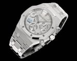 White-Gold-Black DDD Bls New Audemars Piguet Royal Oak Offshore 26420 Series. DDD 1: Dandong factory 4401 column movement, 6.8mm thickness, all parts are interchangeable with the original 1-1 replica. DDD 2: Dandong factory 4401 free-sprung balance wheel movement is more stable and accurate, finely engraved lettering, all appearance is consistent. DDD 3: The dial logo 1-1 is meticulously engraved, with each character perfectly matching the original. The "A" has a long leg, and the "E" has a diagonal angle in the middle with a thin horizontal line. DDD 4: The dial background texture is enlarged, with a uniform and three-dimensional grid. The wafer square embossed lines are clearly consistent with the original. DDD 5: The dial date window is laser-engraved on 4 axes, resulting in a three-dimensional and square shape. DDD 6: The six corner holes on the bezel are three-dimensional with precise lines. The imported high-gloss screws are three-dimensional, clean, and bright, with a tight fit. DDD 7: The sandblasting lines in the dead corners of the case are clearly consistent. The octagonal lines on the bottom of the bezel are three-dimensional, clear, and continuous, with accurate dimensions . DDD 8: The strap has a smooth transition from thick to thin, with each link flowing smoothly without unevenness or size. The strap is smoother and doesn't scratch the skin. The lines in the polished and sandblasted areas are straight and three-dimensional , and the screws are clean, three-dimensional, and bright. DDD 9: The brushed sandblasting on the bezel is consistent without breaks or unevenness. The polished areas are brighter, the sandblasting is finer, and the holes and screws are smooth, precise, and tightly fitted without deviation. All parts are interchangeable with the original. The Audemars Piguet DDD Bls 26420 series combines the brand's iconic design, complex functions, and top-notch craftsmanship, making it suitable for both everyday wear and professional timekeeping needs, a true masterpiece of modern sports watches. Watch enthusiasts are welcome to explore and appreciate the DDD series.