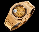 White-Gold-Black DDD Bls New Audemars Piguet Royal Oak Offshore 26420 Series. DDD 1: Dandong factory 4401 column movement, 6.8mm thickness, all parts are interchangeable with the original 1-1 replica. DDD 2: Dandong factory 4401 free-sprung balance wheel movement is more stable and accurate, finely engraved lettering, all appearance is consistent. DDD 3: The dial logo 1-1 is meticulously engraved, with each character perfectly matching the original. The "A" has a long leg, and the "E" has a diagonal angle in the middle with a thin horizontal line. DDD 4: The dial background texture is enlarged, with a uniform and three-dimensional grid. The wafer square embossed lines are clearly consistent with the original. DDD 5: The dial date window is laser-engraved on 4 axes, resulting in a three-dimensional and square shape. DDD 6: The six corner holes on the bezel are three-dimensional with precise lines. The imported high-gloss screws are three-dimensional, clean, and bright, with a tight fit. DDD 7: The sandblasting lines in the dead corners of the case are clearly consistent. The octagonal lines on the bottom of the bezel are three-dimensional, clear, and continuous, with accurate dimensions. DDD 8: The strap has a smooth transition from thick to thin, with each link flowing smoothly without unevenness or size. The strap is smoother and doesn't scratch the skin. The lines in the polished and sandblasted areas are straight and three-dimensional, and the screws are clean, three-dimensional, and bright. DDD 9: The brushed sandblasting on the bezel is consistent without breaks or unevenness. The polished areas are brighter, the sandblasting is finer, and the holes and screws are smooth, precise, and tightly fitted without deviation. All parts are interchangeable with the original. The Audemars Piguet DDD Bls 26420 series combines the brand's iconic design, complex functions, and top-notch craftsmanship, making it suitable for both everyday wear and professional timekeeping needs, a true masterpiece of modern sports watches. Watch enthusiasts are welcome to explore and appreciate the DDD series.