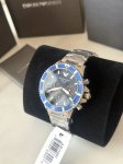 features a brand-new 43.5mm large dial design, paired with a 22mm wide three-link stainless steel bracelet, exuding a sophisticated feel and offering comfortable wear. The blue sunburst dial integrates a multi-functional three-dial, six-hand layout, with luminous sword-shaped hands for clear time reading. The silver-white case and rotating blue bezel complement each other, while the jewel-like clasp details add a touch of luxury.