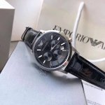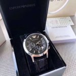 Armani Ar2432 2433 2447 2473. This multi-functional men's chronograph watch features a multi-function quartz movement with a powerful minute hand, chronograph, and 24-hour synchronization. It has a mineral glass crystal, a simple pin buckle design, and measures 43mm x 11mm. Understated elegance, business style, and a sophisticated, handsome look.