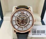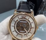 Armani Ar60007 Rose Gold Watch with Skewered Three Hands, Exuding British Charm; Automatic Mechanical Movement with Rose Gold Plating; 30-Meter Water Resistance; Luminous Hands; Mineral Glass; Genuine Leather Strap; Traditional Pin Buckle; Size: 43 x 13 mm