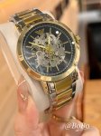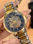 Armani's classic retro skeleton design with three hands exudes elegance and sophistication