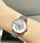 Emporio Armani Diamond-set Watch, Quartz Movement, Stainless Steel Strap, White Dial, Women's Watch, Trendy Casual Fashion