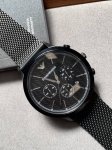 Emporio Armani Three-Eye Calendar Black Steel Strap Sports Men's Watch Ar2498
