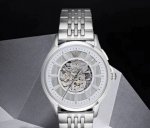 Emporio Armani watch, mechanical movement, stainless steel bracelet, 43mm, white dial, men's watch with transparent window, high-end gift box.