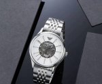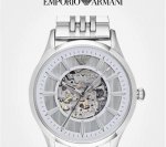 Emporio Armani watch, mechanical movement, stainless steel bracelet, 43mm, white dial, men's watch with transparent window, high-end gift box.