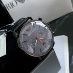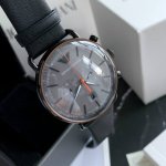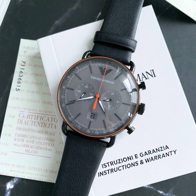 Armani Emporio Armani Men's Casual Simple Leather Strap Trendy Quartz Watch Ar11168. Original imported movement, 44mm dial. A sophisticated and high-end men's watch with a three-register precision dial. High-end mineral glass dial, dark gray light pebbled leather strap, comfortable and durable, exuding gentlemanly style. Showcases masculine charm.