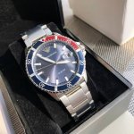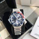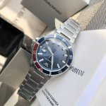 Supports direct shipping from Hong Kong and the US. Authentic products guaranteed! Comes with warranty card and nationwide warranty! Emporio Armani Ar11339, a new business casual men's watch with a simple and elegant quartz steel strap. Features a diving and sporty style, three hands, date bezel, sundial pattern, and blue dial, showcasing a quality lifestyle. The finely polished finish maintains the watch's premium feel, with details highlighting the brand's quality. The stainless steel strap is engraved with the eagle logo. The details exude quality and reflect a unique lifestyle. It features mineral-strengthened glass, 100M water resistance, a 42mm dial diameter, and a 12mm case thickness.