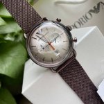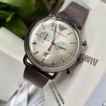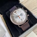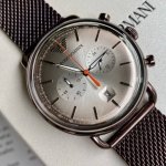 ! Authentic! Armani Case: 316L stainless steel Crystal: Tempered mineral glass Strap: 316L stainless steel woven mesh strap Buckle: Size: 43mm*11mm, Multi-dimensional chronograph dial, stylish three-dimensional texture, sophisticated and cool hazy blue color showcasing a modern urban style.