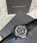 Armani's designers are truly amazing! That hollow silver dial paired with the leather strap is so cool! What guy wouldn't be moved? It's got so much emotional value! It's so classy and sophisticated. I especially love the hollow mechanical dial. It has luminous metal hands and a see-through caseback. It's elegant and classy. The dial is 43mm and water-resistant to 50m. It looks so cool, even girls can't help but admire it. I can't take my eyes off any guy! It's a true treasure, a dream watch. It looks great on everyone! It's perfect for everyday wear, business, or sports !