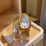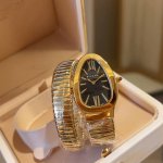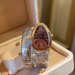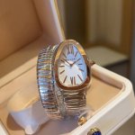 Gold 280 Diamonds 20 Bvlgari Serpenti Spiga - The long-awaited, perfectly crafted boutique version, two years in the making. This watch seamlessly blends the graceful form of the serpent with the modern feel of the Tubogas metal tube. The spiral bracelet, like a winding snake, coils around the wrist, giving the ancient motif a new lease on life. Elegance and individuality coexist, releasing the dual charm of women. A classic serpent design, 35mm in size, with the latest color scheme, and an imported quartz movement, the exquisite craftsmanship is comparable to the genuine article. This serpent watch, a must-have for the sophisticated woman, is a unique creation of Bulgari, belonging to the Bulgari Serpenti collection. This combination of bracelet and watch has been a distinctive symbol of the brand since its inception in the 1940s. Many people have seen the 1962 film adaptation of Cleopatra, where actress Elizabeth Taylor wore a custom-made serpent watch. Even today, this exquisite and unique design continues to be favored by sophisticated women!