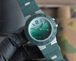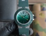 The Bulgari Aluminium series redefines luxury sports watches with its innovative combination of aluminum and rubber. Refreshed and upgraded in 2025, it combines avant-garde design with practicality. The DDD strap features a Velcro closure, suitable for various occasions, including everyday wear and casual occasions. The case is made of lightweight and durable matte-blasted aluminum alloy, while the bezel and strap are made of Fkm rubber for sweat and scratch resistance. The case back is made of DLC-coated titanium for enhanced scratch resistance. The DDD has a 40mm diameter, with snail-patterned chronograph subdials at 3, 6, and 9 o'clock. The hands and markers are coated with Super-Luminova luminous material, the central chronograph seconds hand is adorned with red details, and a date window is located at 4:30. It features a sapphire crystal and is water-resistant to 100 meters. Continuing the series' iconic "Bvlgari Bvlgari" bezel design, it combines Italian elegance with a sporty feel, representing one of Bulgari's masterpieces that blends innovative materials with classic design, offering both practicality and collectability.