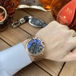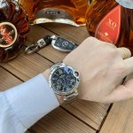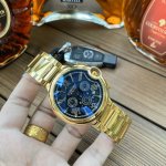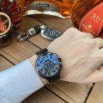 Brand: Cartier Ballon Bleu Series. A popular men's watch with a genuine leather strap and original buckle, made of stainless steel. Features a top-tier six-hand multi-functional quartz movement, mineral-strengthened glass, exquisite craftsmanship, and a grand, sophisticated design. Dimensions: Diameter 42mm, Thickness 14mm.