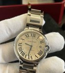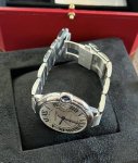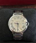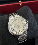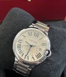 Cartier Ballon Bleu Automatic Mechanical Movement Date Display Water Resistant Minimalist Men's Watch 42mm Silver Dial Stainless Steel Case and Bracelet Inspired by the romance of balloons, the classic rounded case breaks the boundaries of time. DDD