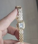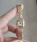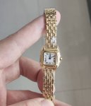 Cartier Mini Panther Gold Women's Watch, measuring 19mm*25mm, is truly exquisite, possessing the beauty of a bracelet. It features a Swiss quartz movement, and the square design with its graceful lines and luster resembles jewelry, perfectly embodying the delicate, feminine, and elegant aesthetics of the panther. The pearlescent silver-plated square dial and Swiss sword-shaped blued steel hands are exceptionally perfect. The flexible link design makes the bracelet delicate and refined! It can be worn as a watch or a bracelet, comfortable and fitting snugly on the wrist. A must-have! #CartierPantherSmall #CartierPantherWomensWatch #CartierMiniPanther #MiniPanther #PantherMini #CartierLittlePanther #CartierPantherWomensWatchSmall