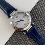 women's watch is now available! The highest quality version on the market, with more refined details. Men's size 35mm. Choose from blue or red leather straps. Highlight 1: The replica uses titanium end links on the leather strap, unlike other versions on the market, making it more durable for easy removal. Highlight 2: The strap changing button on the case matches the lugs more closely, making it instantly recognizable as a fake. Highlight 3: The latest Quick Switch system allows for easy strap removal without tools. Highlight 4: The watch also features the Smart Link system, allowing for automatic adjustment of the strap length. Highlight 5: Includes a free strap removal tool (like the one used at the boutique) and a free winding and time-setting tool! Highlight 6: Features an imported and modified Cartier 1847Mc automatic movement, with a movement as authentic as the genuine article.
