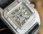 Cartier Santos Full Diamond Series 39mm*13mm Quartz Movement High-Strength Blue Light Glass Top Layer Leather Strap Original Buckle Classic Case Shape Timeless Santos DDD